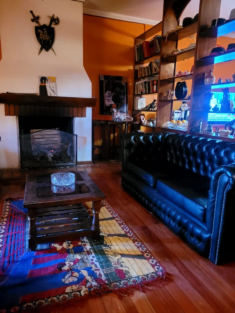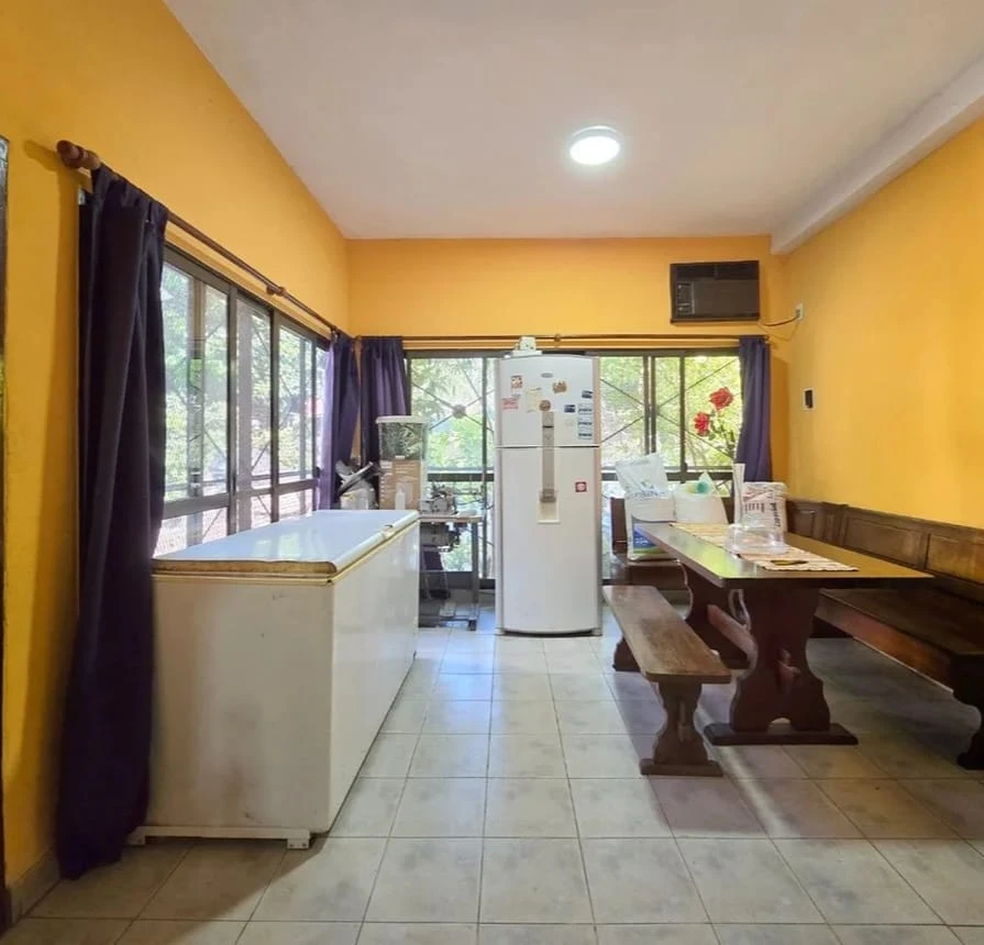 Quincho con parrilla, baño completo y habitación adicional.